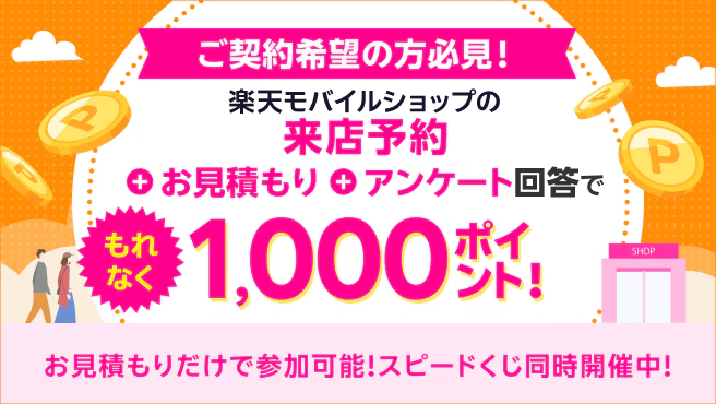 - 他社から楽天モバイルへ乗り換えで14,000ポイント還元