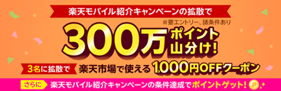 【常時開催】楽天モバイル紹介キャンペーンを拡散するとポイントゲット!