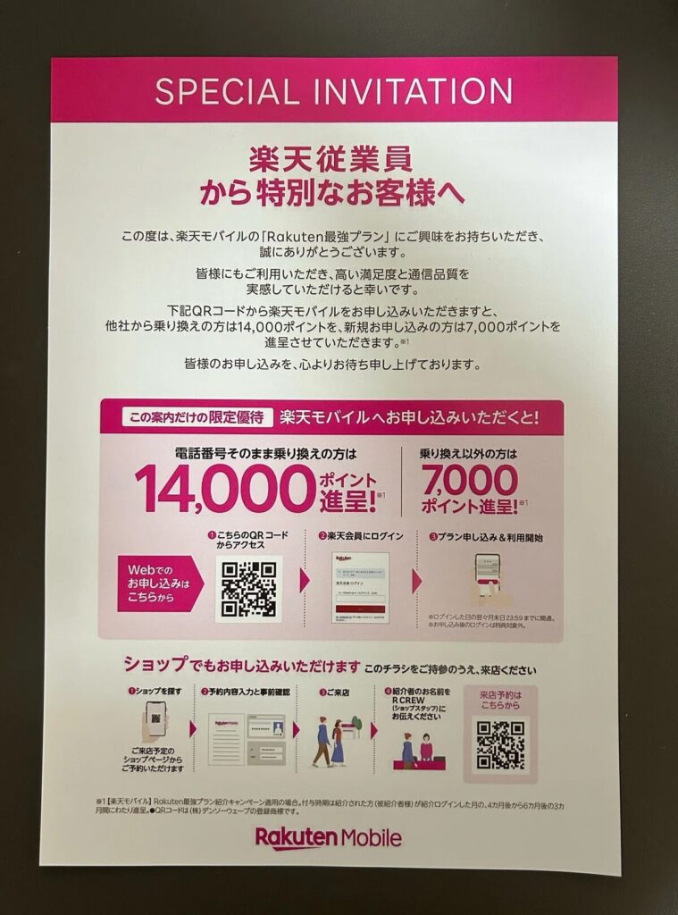 楽天モバイルの従業員紹介のチラシは怪しい?その正体は