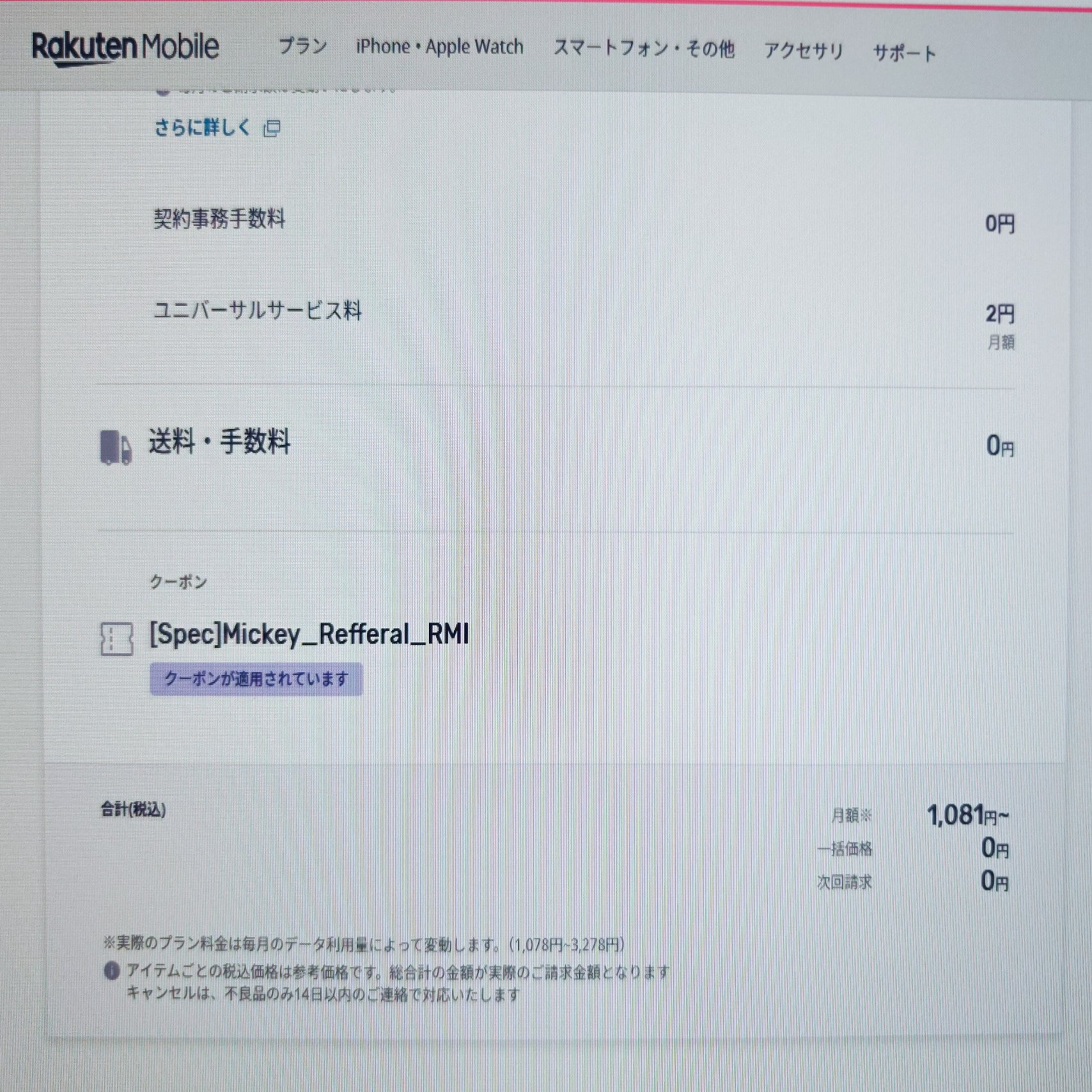 my楽天モバイルでクーポンコード適用を調べる🔍