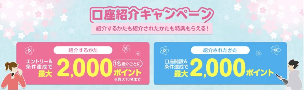- 紹介者も1名紹介で2,000P獲得!口座開設後に家族や友人へ紹介しよう