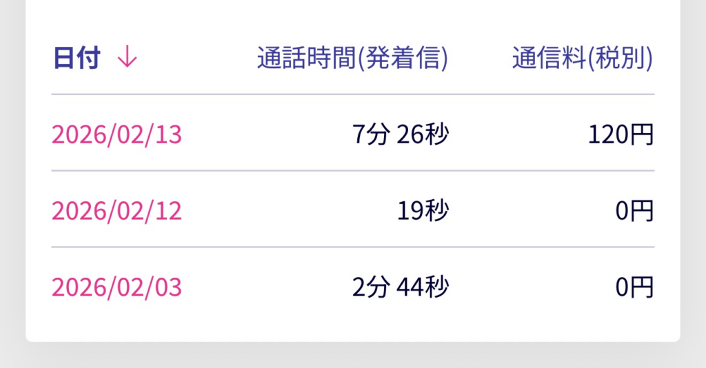 日付と通話時間を確認し、10秒以上通話できていれば問題ありません。