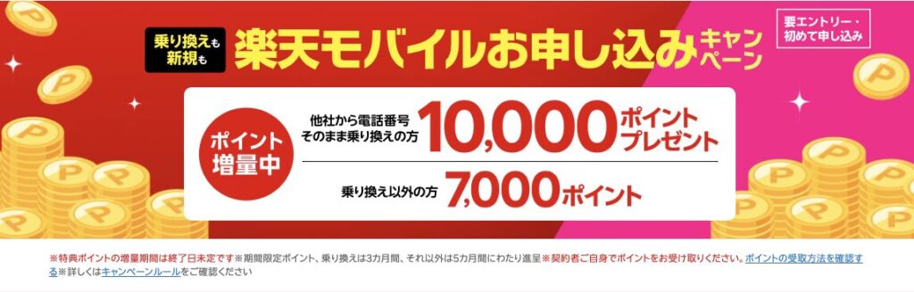 - 他社から楽天モバイルへ乗り換えで14,000ポイント還元